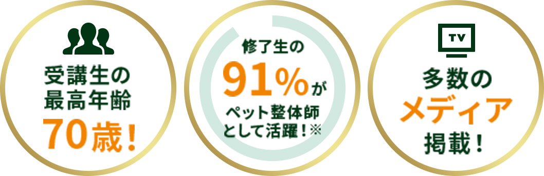 ※2019年7月~2025年3月の卒業生100名の内91名がペット整体師として活躍。